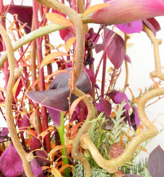 今週のアレンジはお花というより盆栽的な味わいのあるものになっています!くねくねしたキウイ🥝のツルを使っているのが面白いですね😆