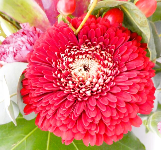 下の真ん中にどーん!とある真っ赤なガーベラ、アップで見るとすごく豪華なんですよ✨