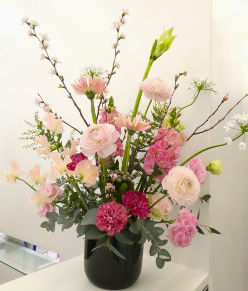上に伸びる桜やピンクのお花たちの彩りが、暦上ではありますが春の始まりにピッタリなアレンジになっています✨
