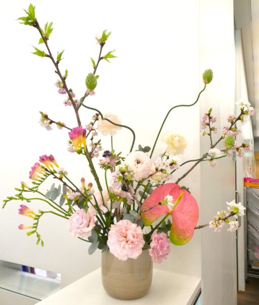 今週のアレンジにも綺麗な桜が入っていて、ほかのお花もピンク色でまとまっていてとても春らしいアレンジになっています✨